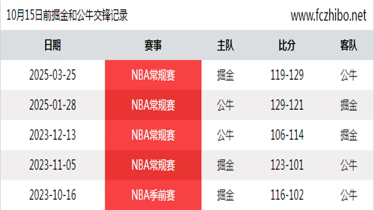 风驰直播10月15日讯 掘金和公牛近5场对决中,掘金打赢3场(胜率60%),公牛(胜率为40%)取得2场胜利,最近一次交手是在3月25日,掘金主场迎战公牛并以119比129落败于对手,而交锋分差最大的一场发生在2023年11月5日,掘金主场以123比101完胜公牛。