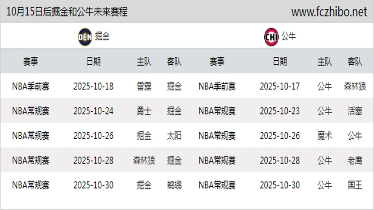 比赛地址:10月15日 NBA季前赛 掘金vs公牛直播