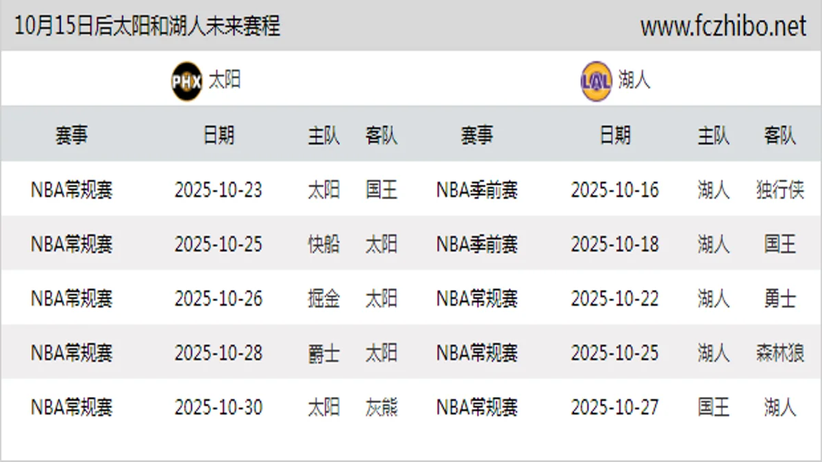 对阵球队:太阳vs湖人