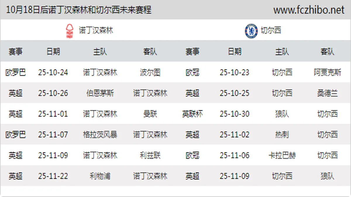 比赛地址:10月18日 英超第8轮 诺丁汉森林vs切尔西直播